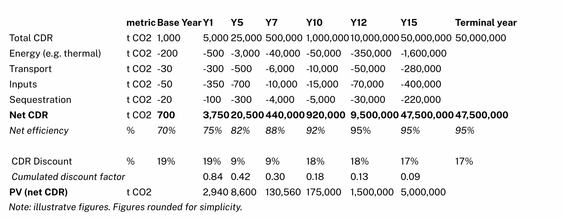 • We consider the system could scale to volumes amounting 50 megaton of gross carbon removal per year within the next 15 years